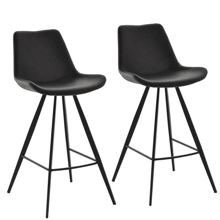 Set of 2 Microfiber Bar Stools, Kitchen Stools with Padded Seat, Black