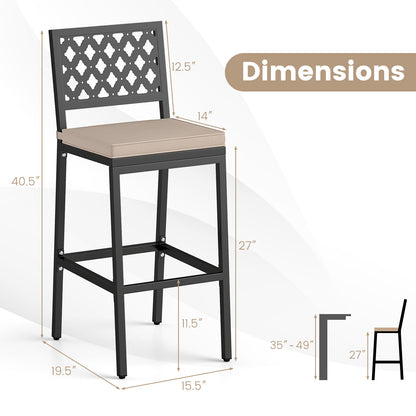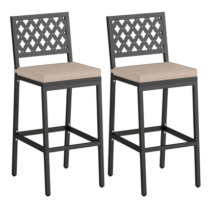 Set of 2 Patio Bar Chairs Counter Height with Detachable Cushion and Footrest-Argyle Pattern, Black