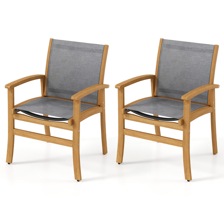 Set of 2 Patio Dining Chairs with Breathable Fabric and Acacia Wood Frame, Natural