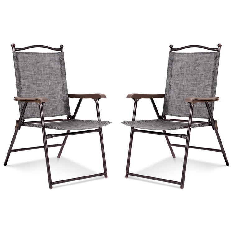 Set of 2 Patio Folding Sling Back Camping Deck Chairs, Gray