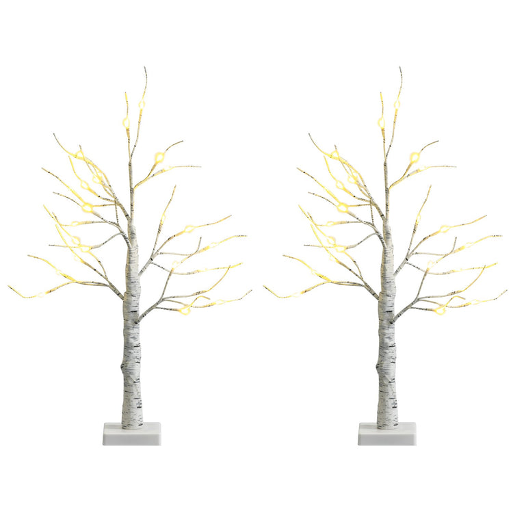 Set of 2 Pre-lit White Twig Birch Tree Battery Powered for Christmas Holiday, White