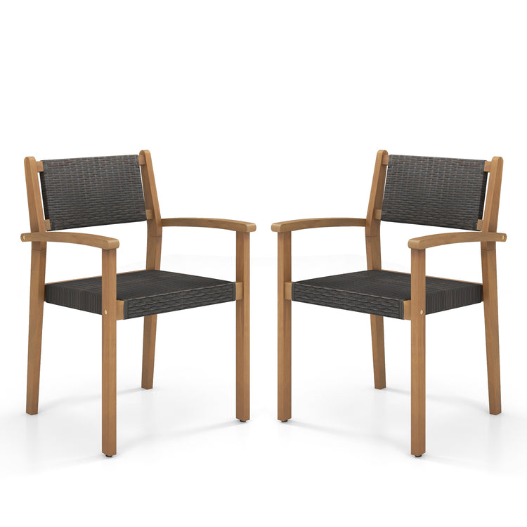 Set of 2 Stackable Outdoor Wicker Dining Chair, Natural