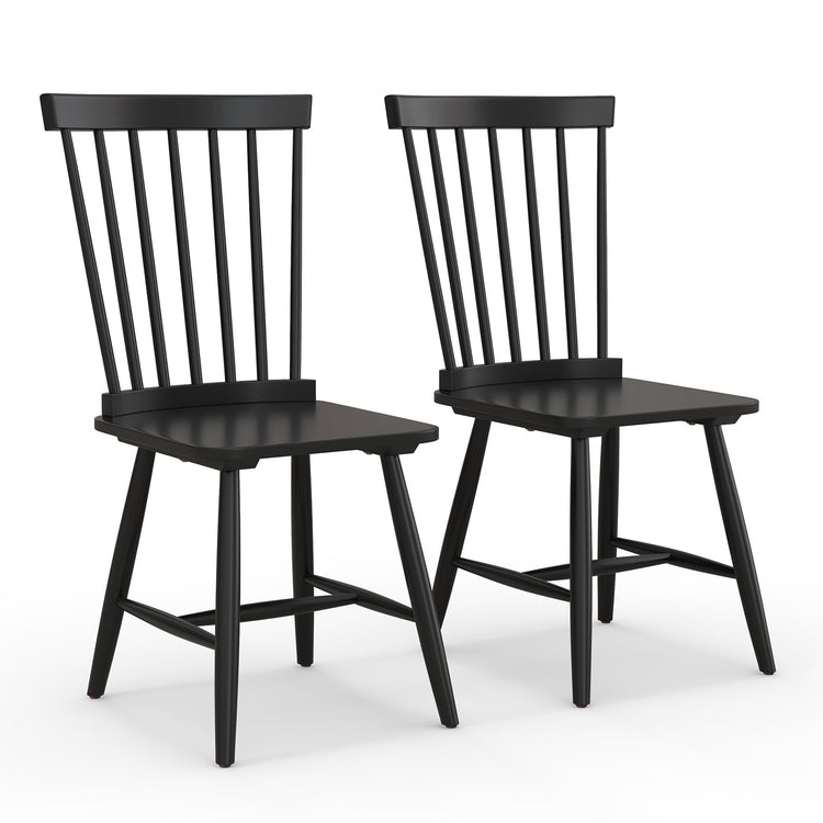 Set of 2 Windsor Dining Chairs with High Spindle Back, Black