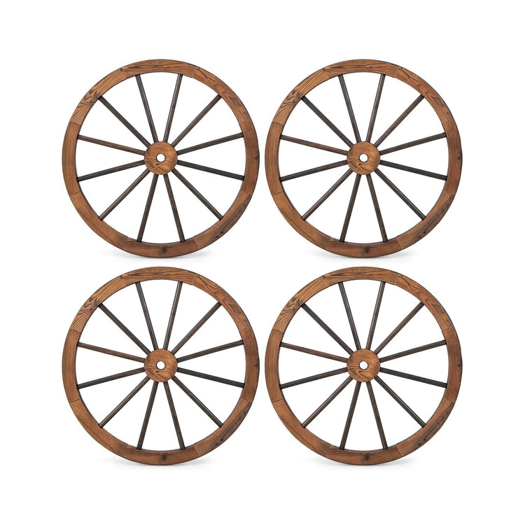Set of 4 Decorative Wooden Wagon Wheels, 30 Inch, Rustic Brown