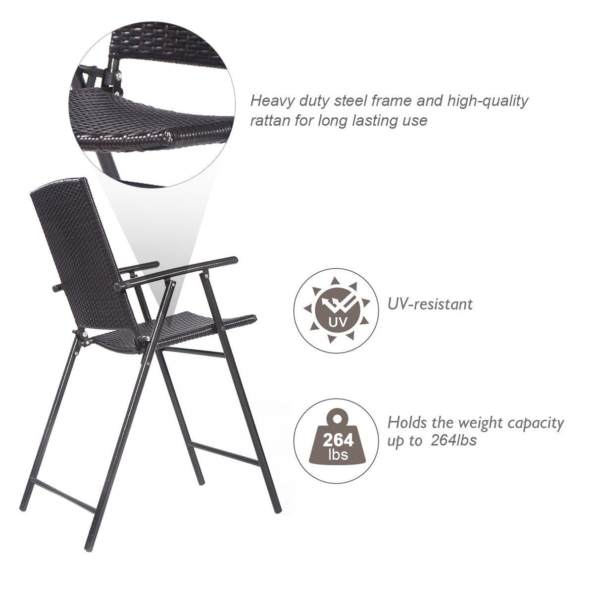 - Bar chair that is easy to fold and carry: 4-piece set, easily folded for indoor use and storage, saving space and extending chair life, lightweight for outdoor transport.