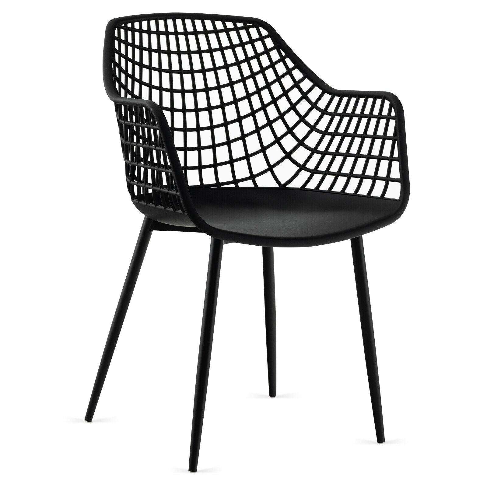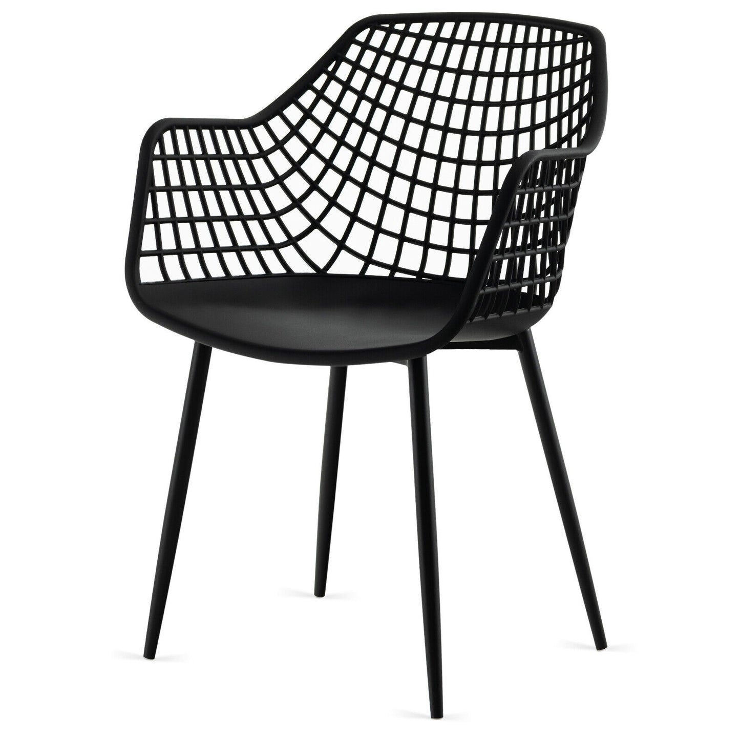 Set of 4 Heavy Duty Modern Dining Chair with Airy Hollow Backrest, Black