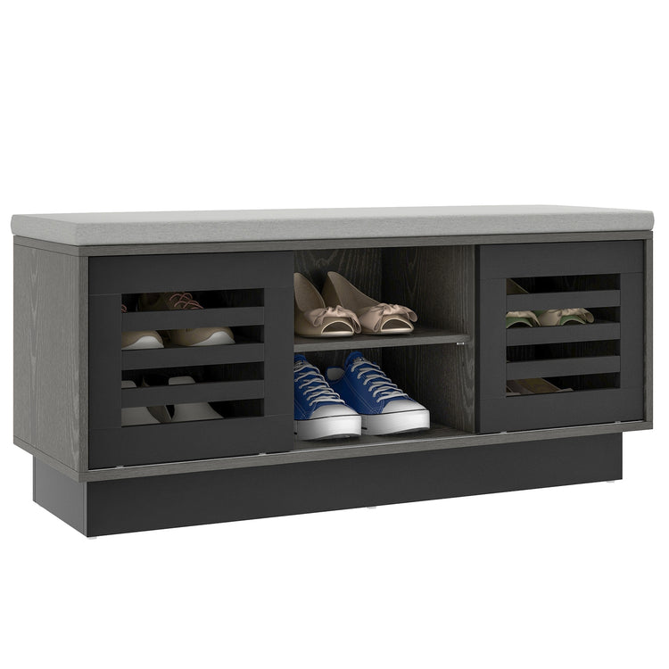 6 Storage Compartments: This shoe storage bench is designed with 6 storage compartments with active shelves, which can hold at least 6 pairs of shoes. Meanwhile, 3-position adjustable shelves enable you to customize the interior storage space for different-sized shoes. You can also remove the 3 adjustable shelves for higher storage space.