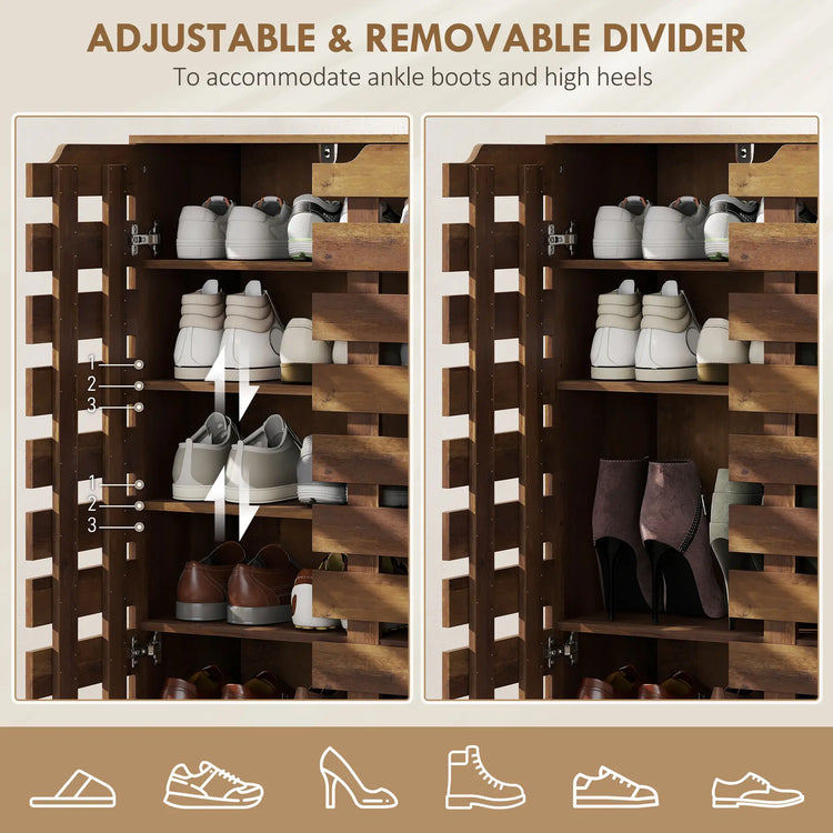 Shoe Cabinet, 21 Pair Storage, Hollowed-Out Doors, Distressed Brown
