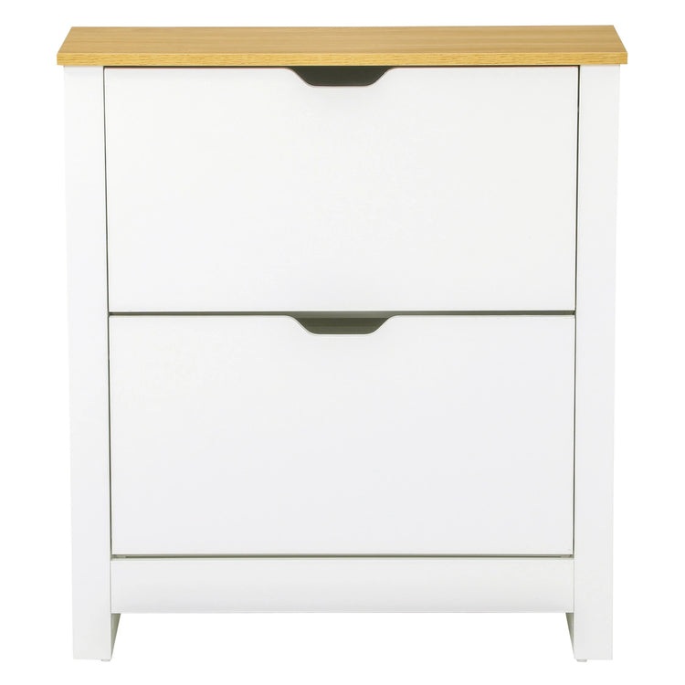 Shoe Storage Cabinet, 2 Flip Drawers, Adjustable Shelves, White