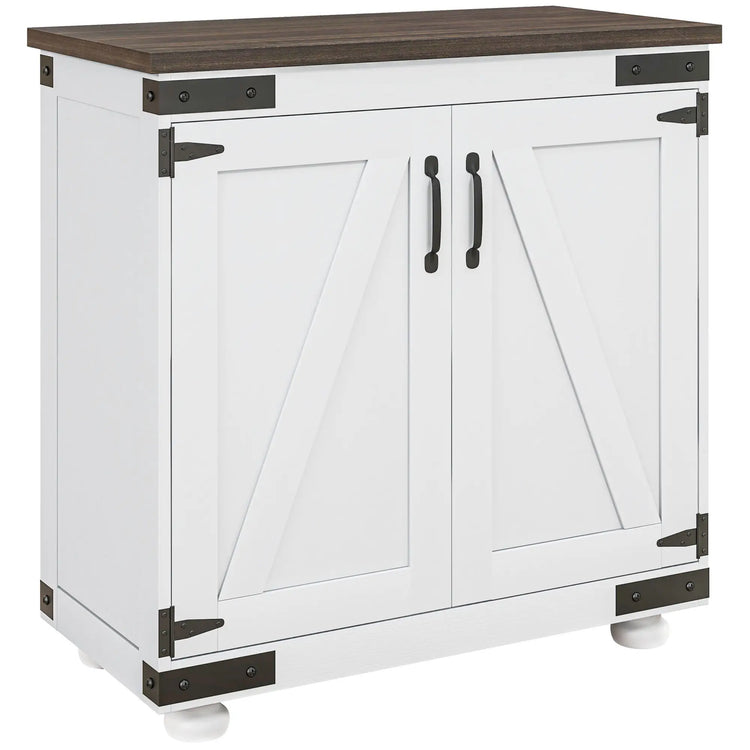 Sideboard Buffet, Kitchen Cabinet with Barn Door, Adjustable Shelves, White, Brown