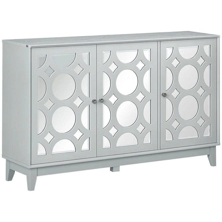 Sideboard Kitchen Buffet, 3 Mirrored Doors, 2 Cabinets, Adjustable Shelf, Gray