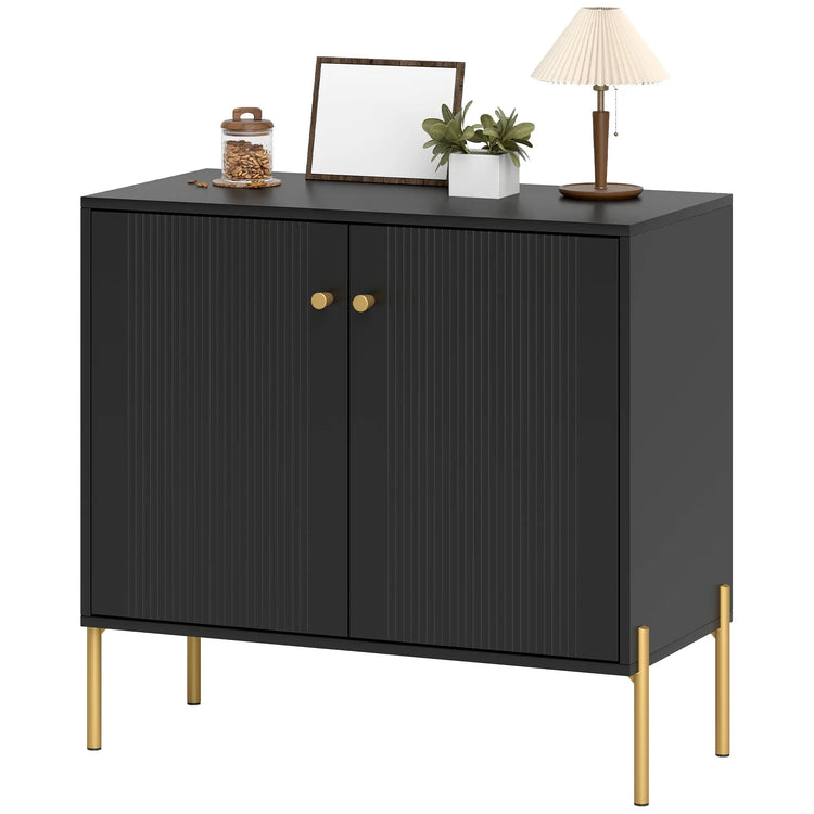 Sideboard, Modern Buffet Cabinet, Coffee Bar with Fluted Doors, Black