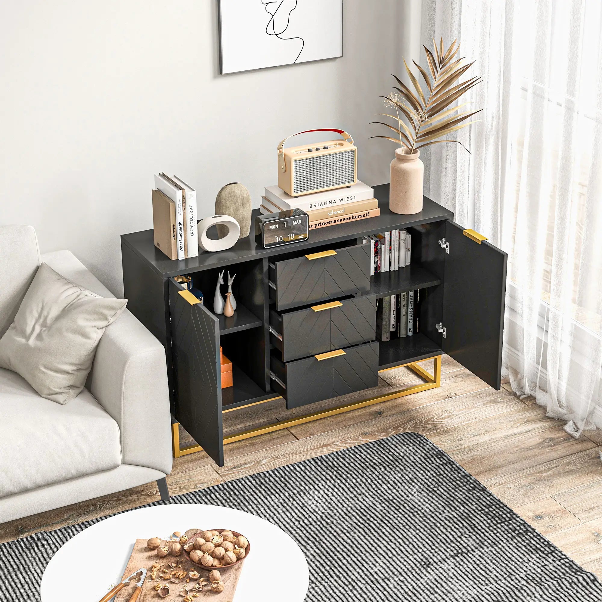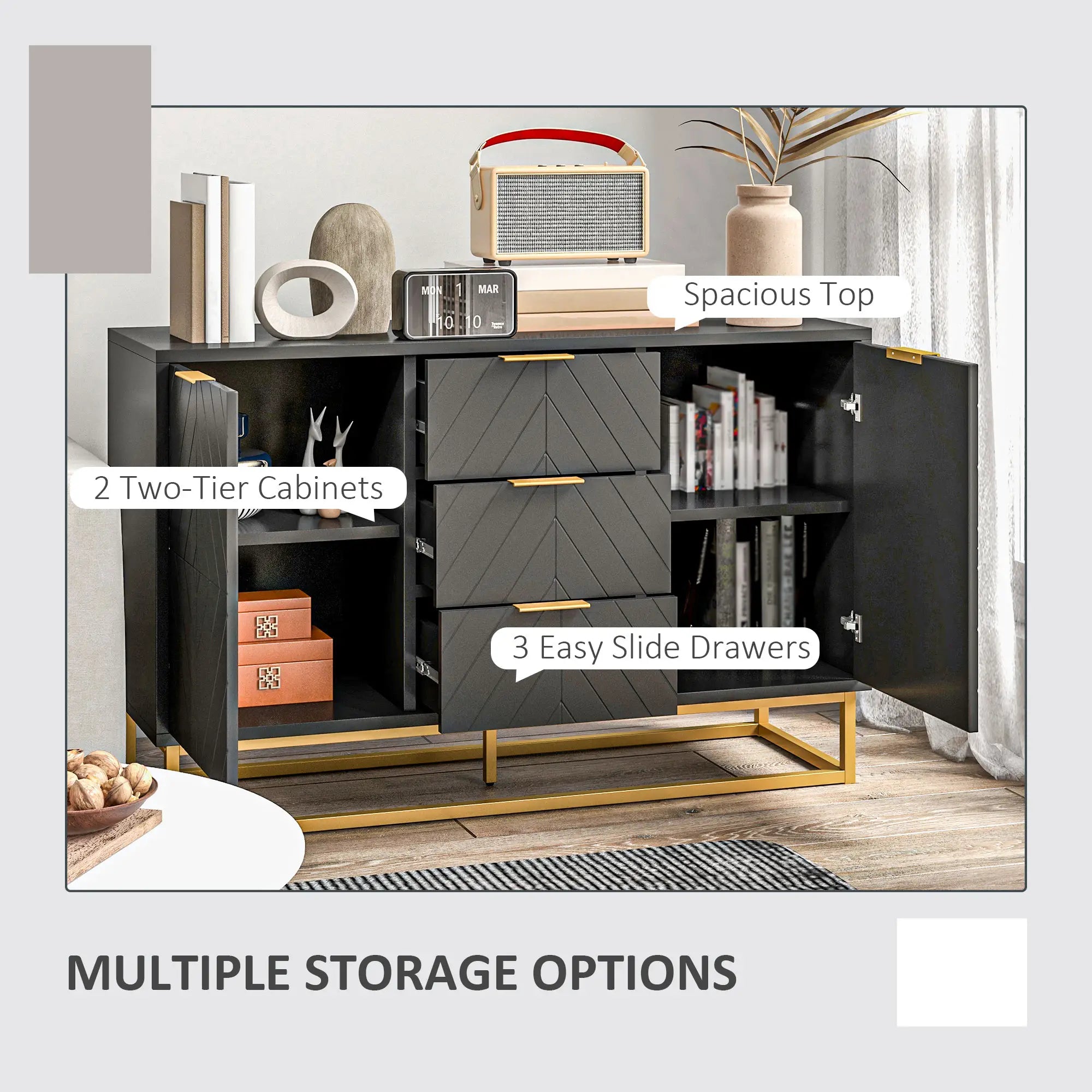 Sideboard Storage Cabinet, 3 Drawers, Adjustable Shelves, Black
