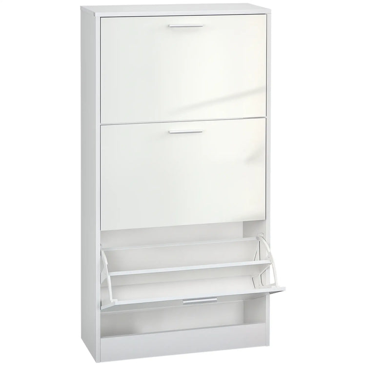 Slim Shoe Storage, 3 Flip Drawers, Adjustable Shelves, 15 Pair, High Gloss, White