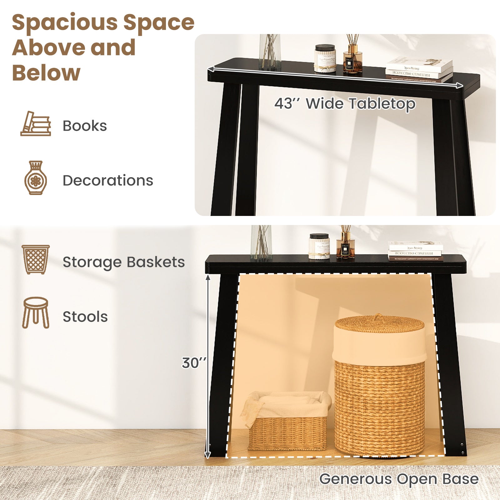 Solid Rubber Wood Console Table 43inch Narrow Entryway Table with Thick Tabletop and Stable Base, Black