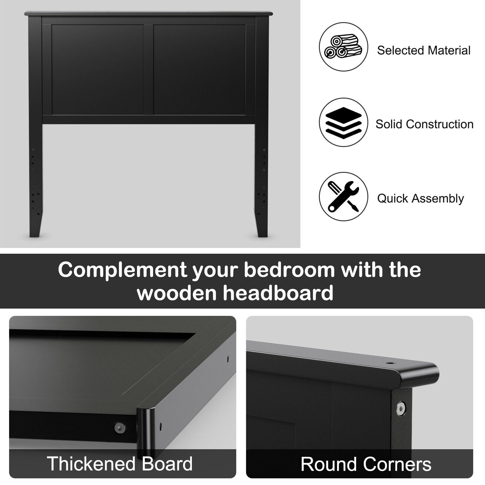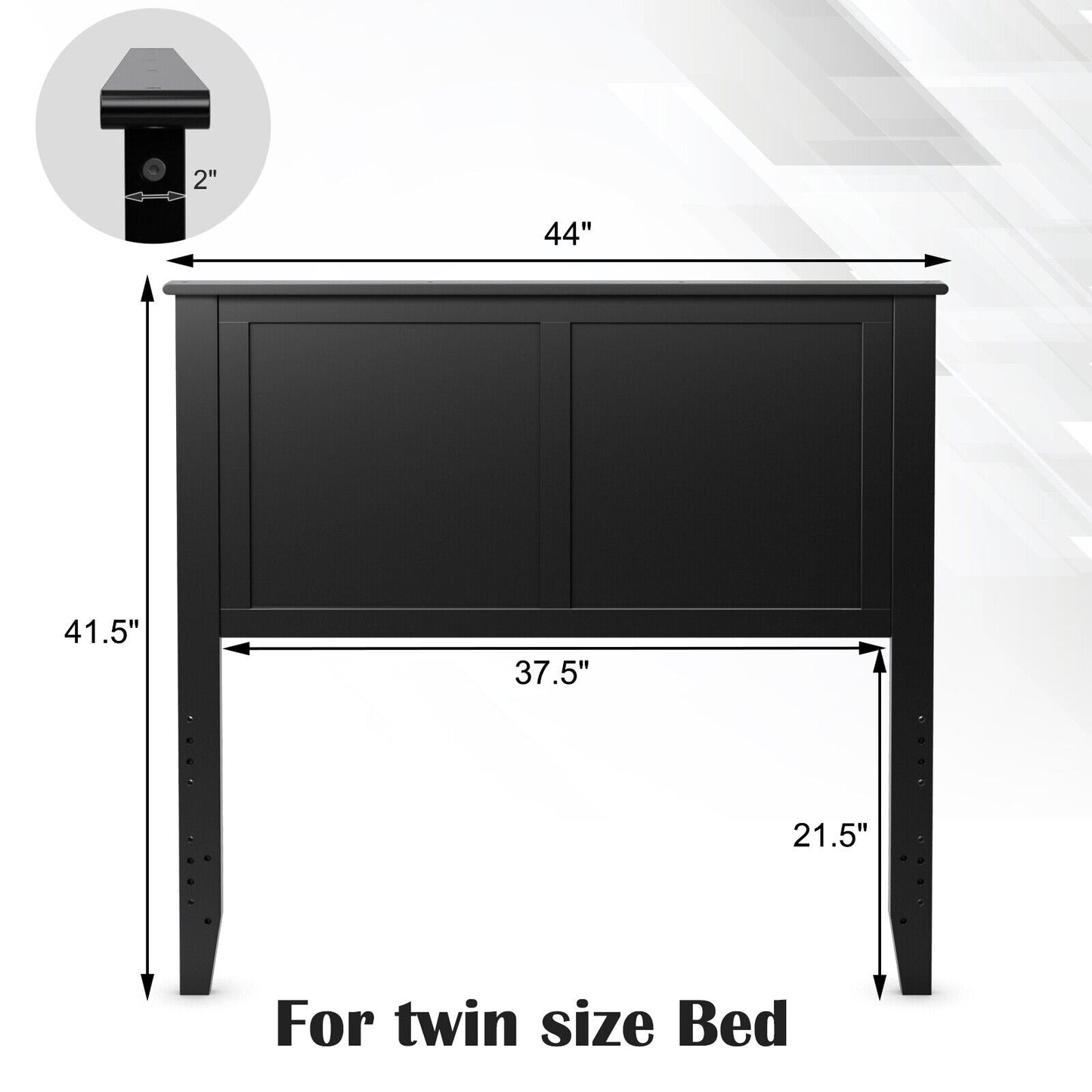 Solid Wood Flat Panel Headboard for Twin-size Bed, Black