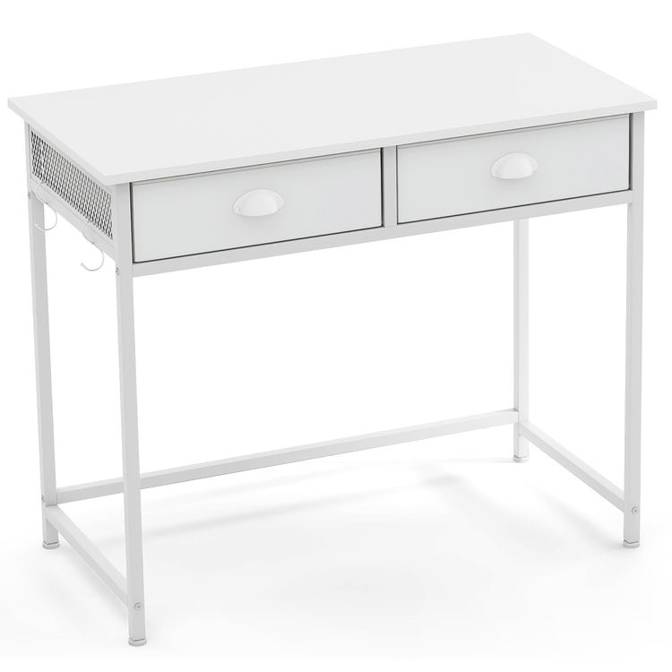 Space Saving Home Office Desk with 2 Fabric Drawers and 4 Hanging Hooks, White