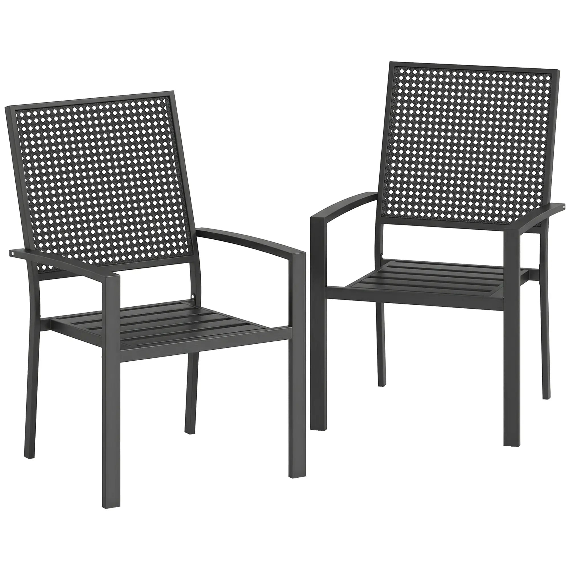 Stackable Patio Chairs Set Of 2, Outdoor Dining Chairs, Black