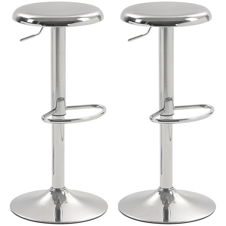 Elevate your home bar or kitchen with this set of two stylish silver bar stools, featuring adjustable height and 360-degree swivel for ultimate comfort and convenience. Perfect for any gathering, these stools combine modern industrial design with durable steel construction.