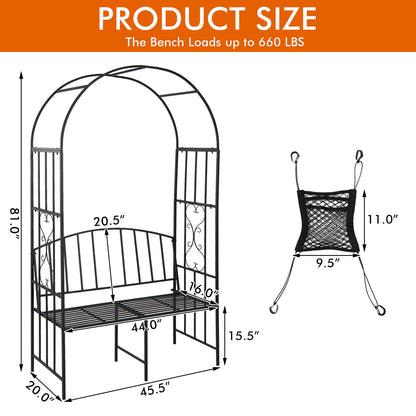 Steel Garden Arch with 2-Seat Bench, Black