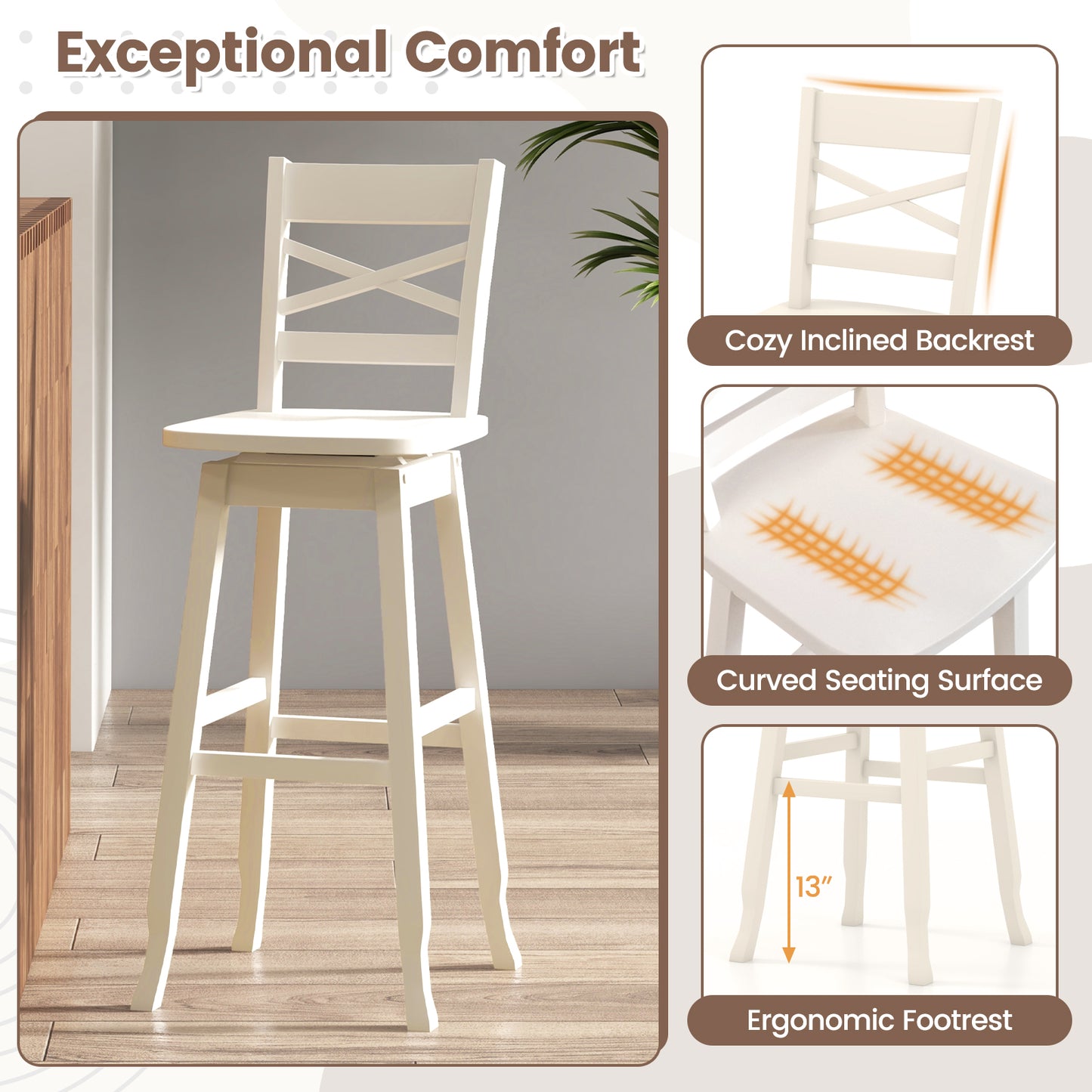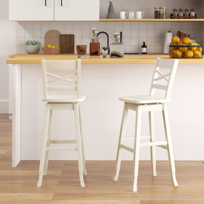 Swivel 30-Inch Bar Height Stool Set of 2 with Footrest, Cream White