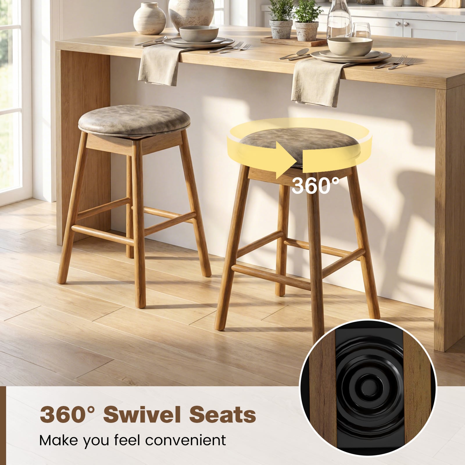 Swivel Counter Height Barstools with Solid Wood Legs and Footrests-Set of 2