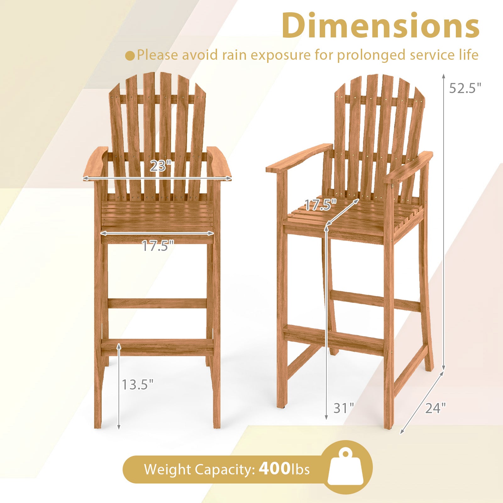 Perfect Height Compatibility: With a 31" seat height, this Adirondack patio high bistro chair is ideal for pairing with 40"-43" bar tables (not included), making it versatile for porches, balconies, decks and backyard areas. Please avoid rain exposure for prolonged service life.