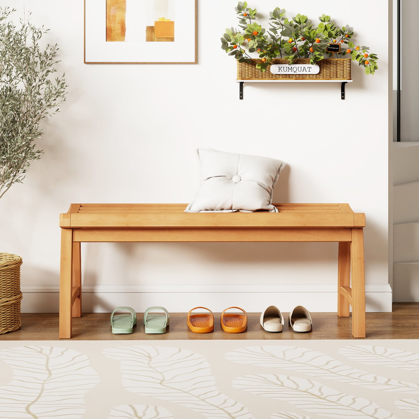 Premium Teak Wood: This wood bench is crafted from high-quality solid teak wood, known for its exceptional strength and natural beauty, adding a timeless aesthetic to your outdoor or indoor setting.Ergonomic Seating for 2: Ergonomically designed with a contoured slatted seat, this patio bench provides you with a comfortable and breathable seating experience. Plus, the splinter-free surface ensures a safe and cozy touch.