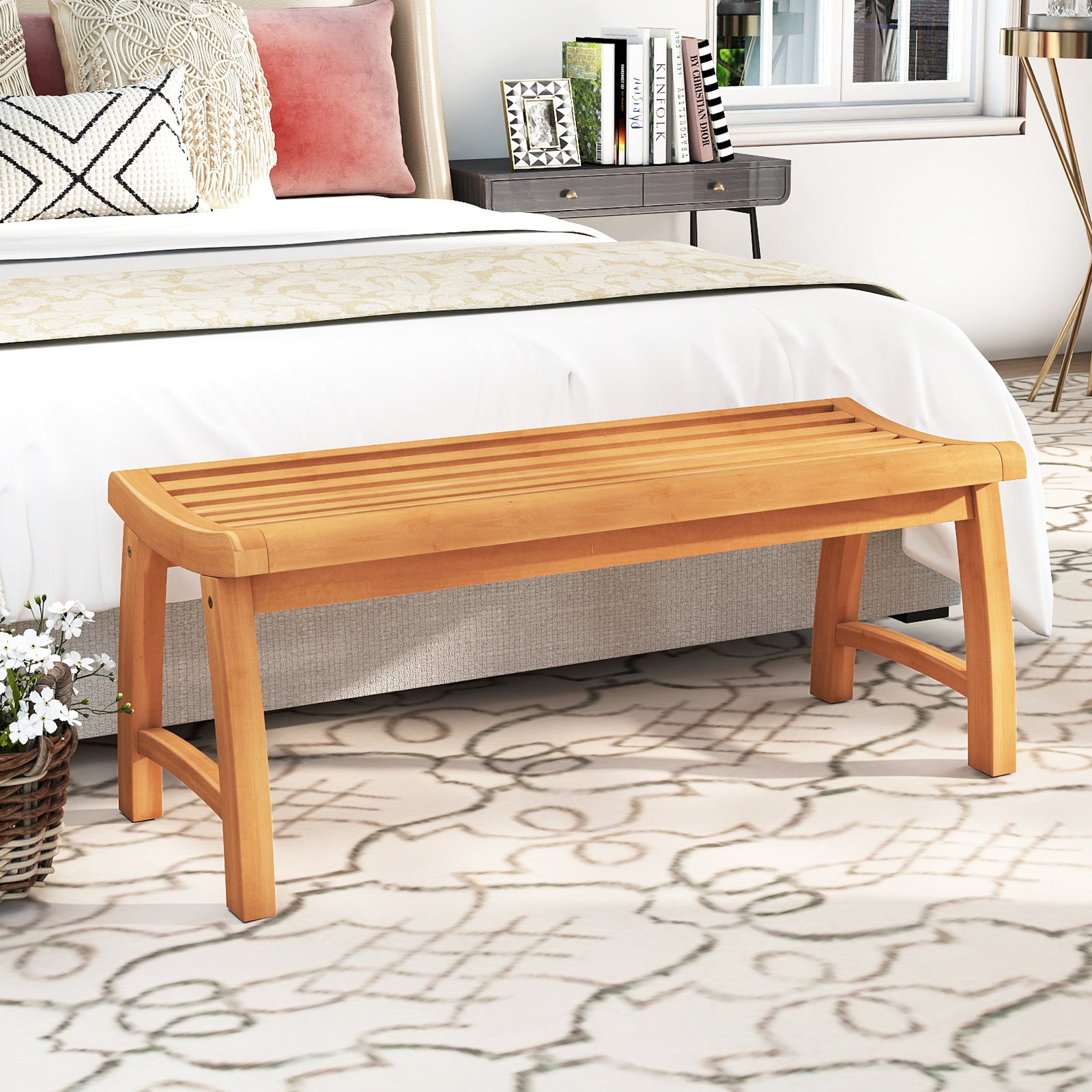 Teak Wood Outdoor Backless Bench with Contoured Slatted Seat