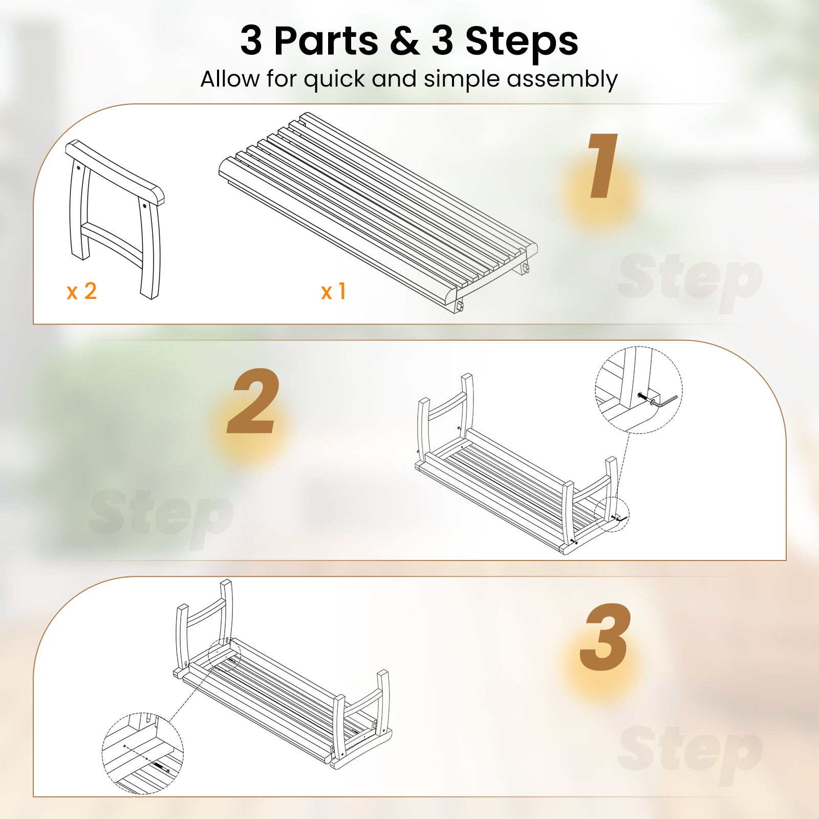 3-Step Easy Assembly: This garden bench can be assembled quickly in just 3 simple steps. Please avoid rain exposure for prolonged service life. Please regularly oil (not included) the wood surface for optimal maintenance.