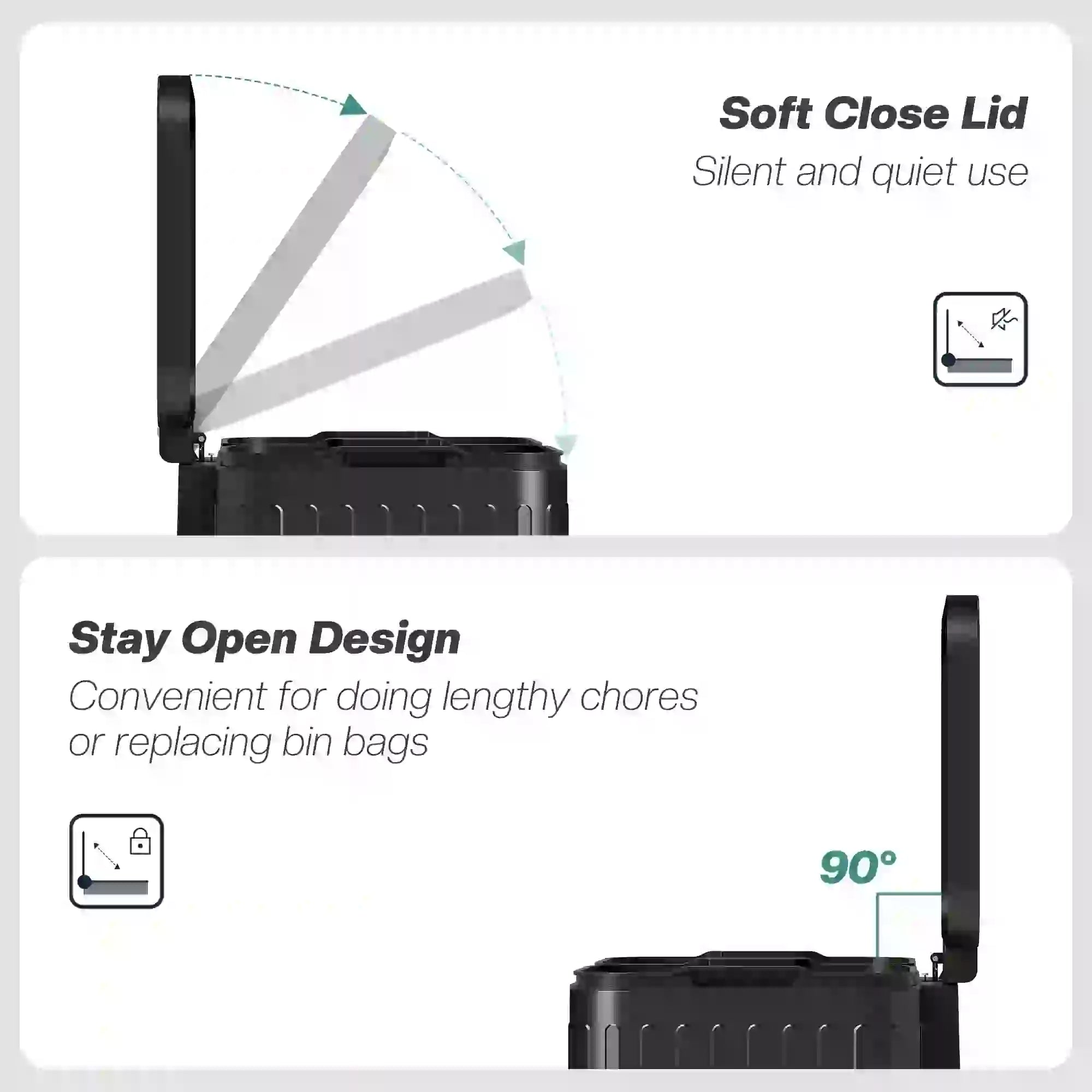 - Dual 20L (5.3 gal) compartments for easy recycling and waste separation
