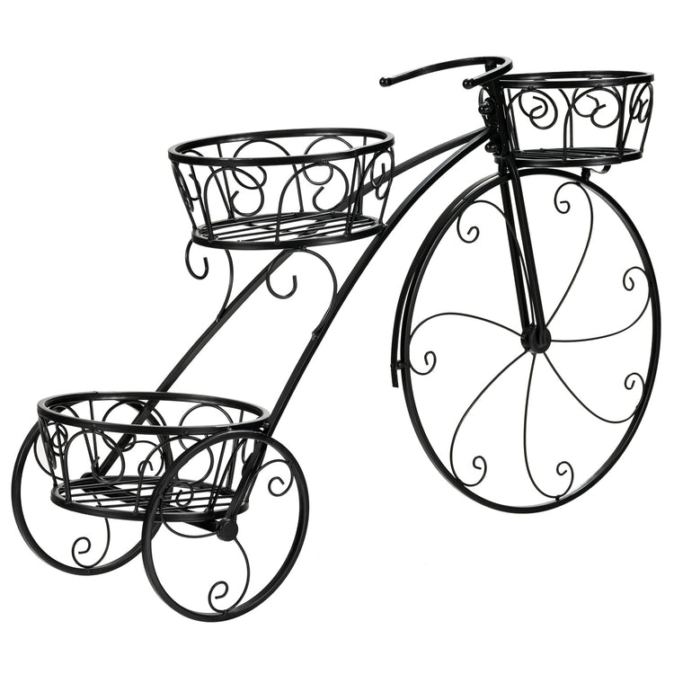 Tricycle Plant Stand Flower Pot Cart Holder in Parisian Style, Black