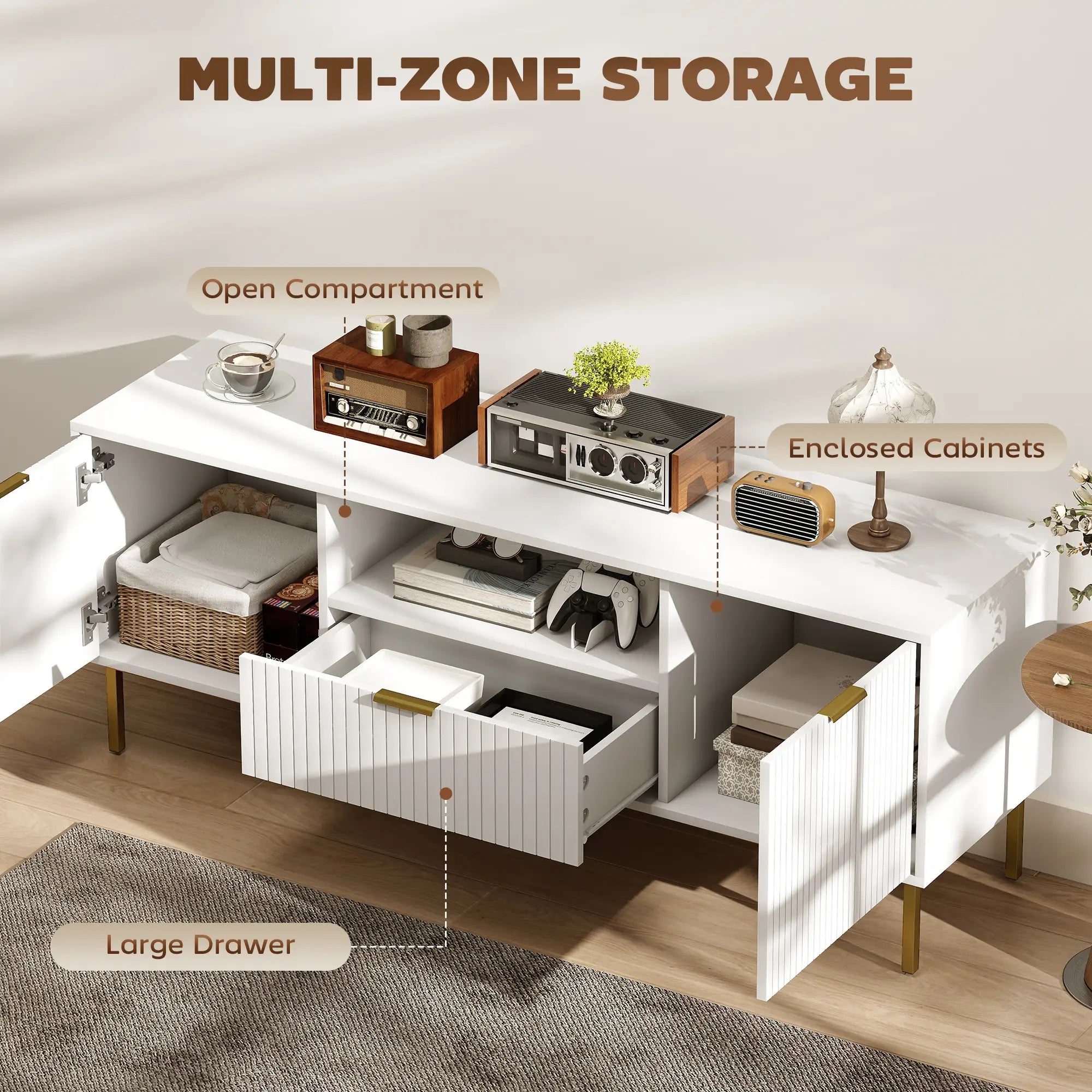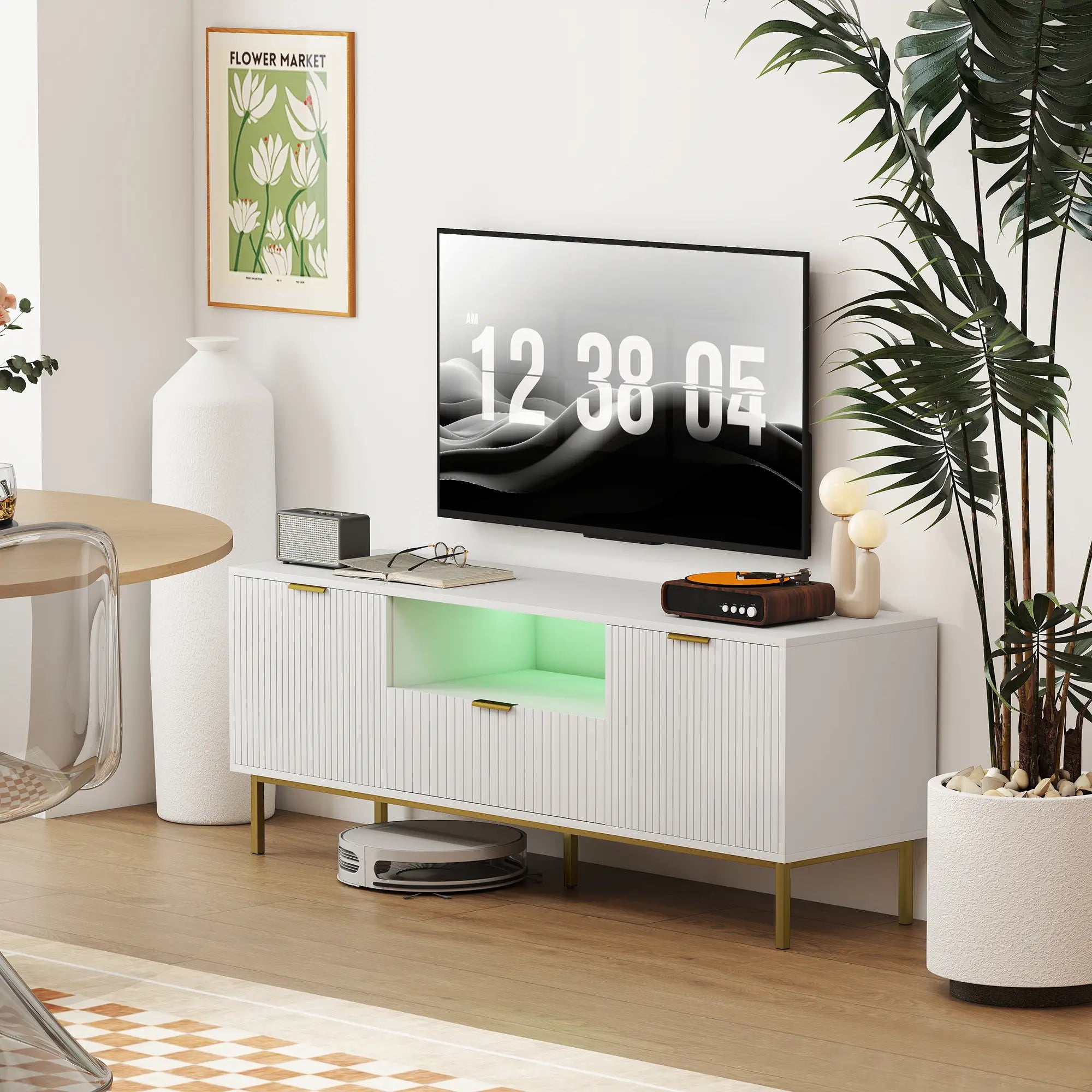 TV Console For 50 Inch TVs, Smart RGB LED Lights, Soft Close Doors, White