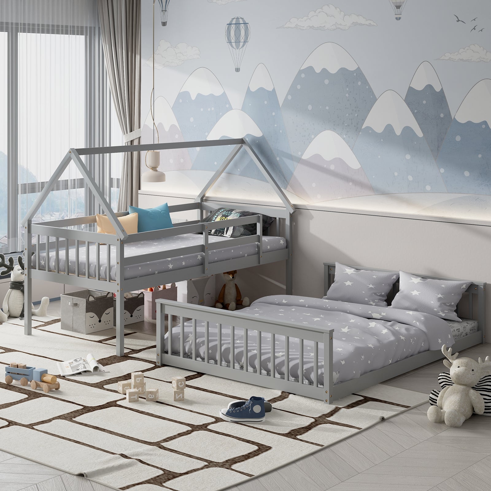 - Adorable playhouse design with a house-shaped roof that is attractive and charming in kids' rooms.