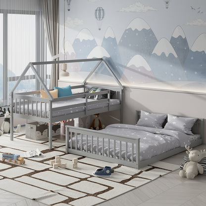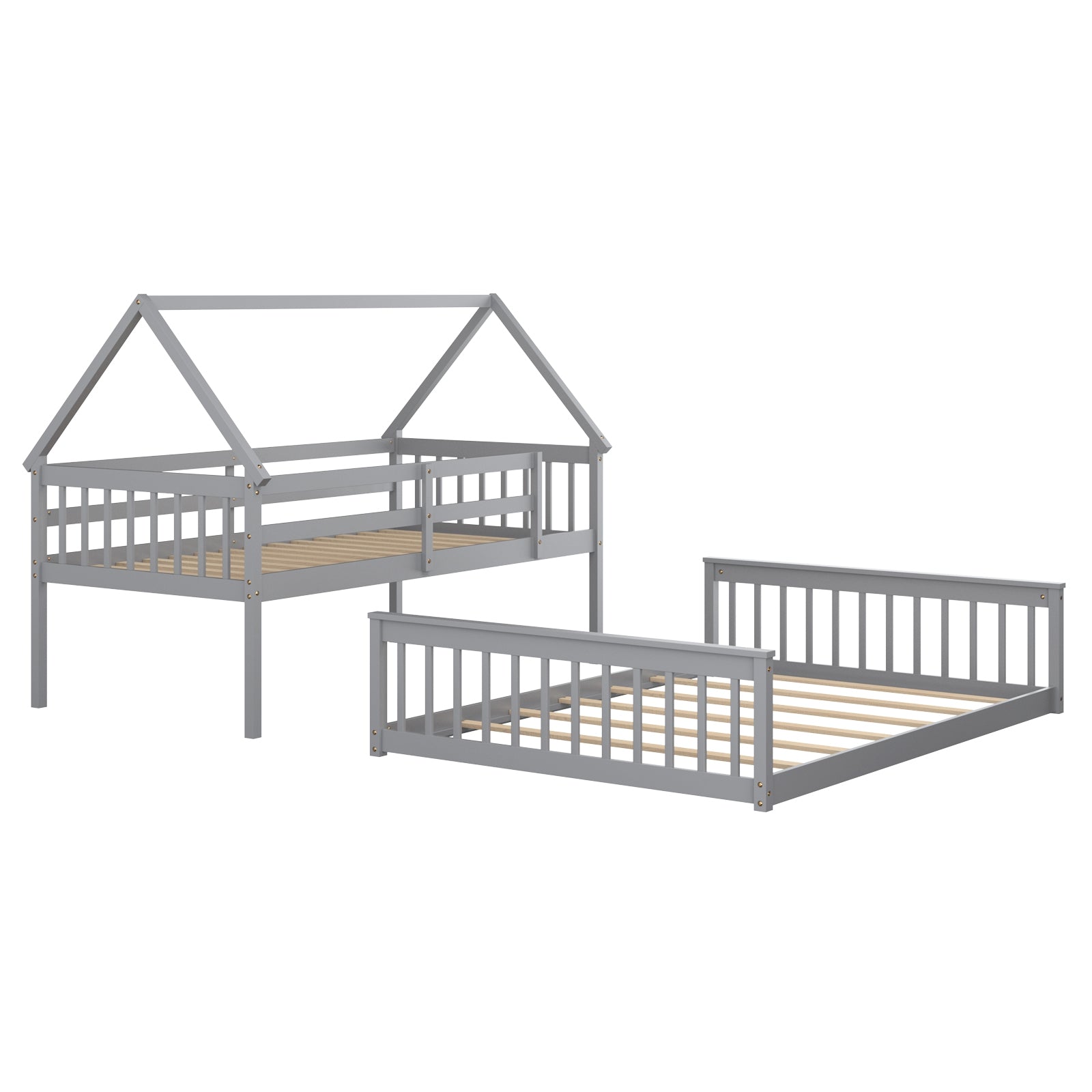 Twin Over Full Bunk Bed, With Ladder And Guardrails, Gray