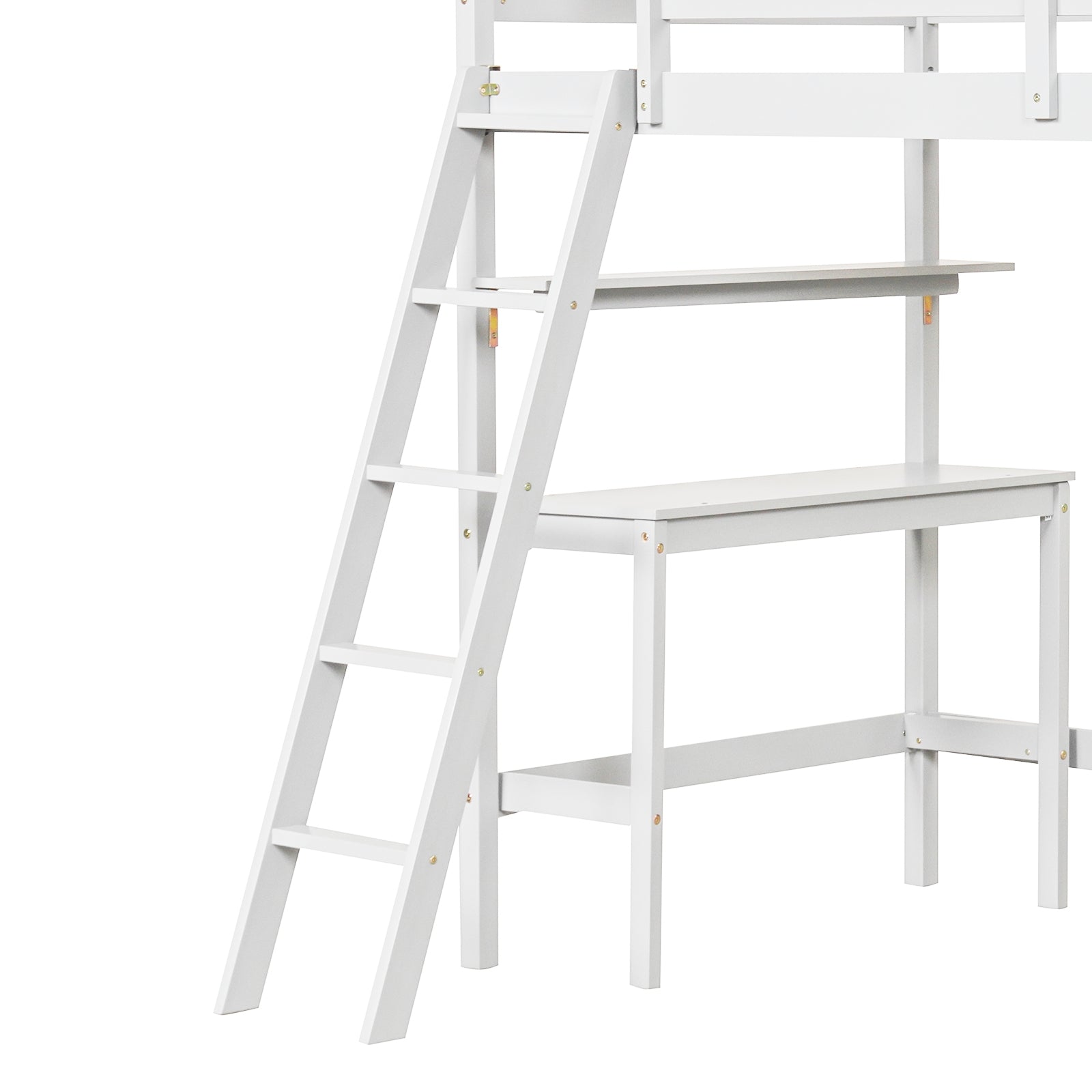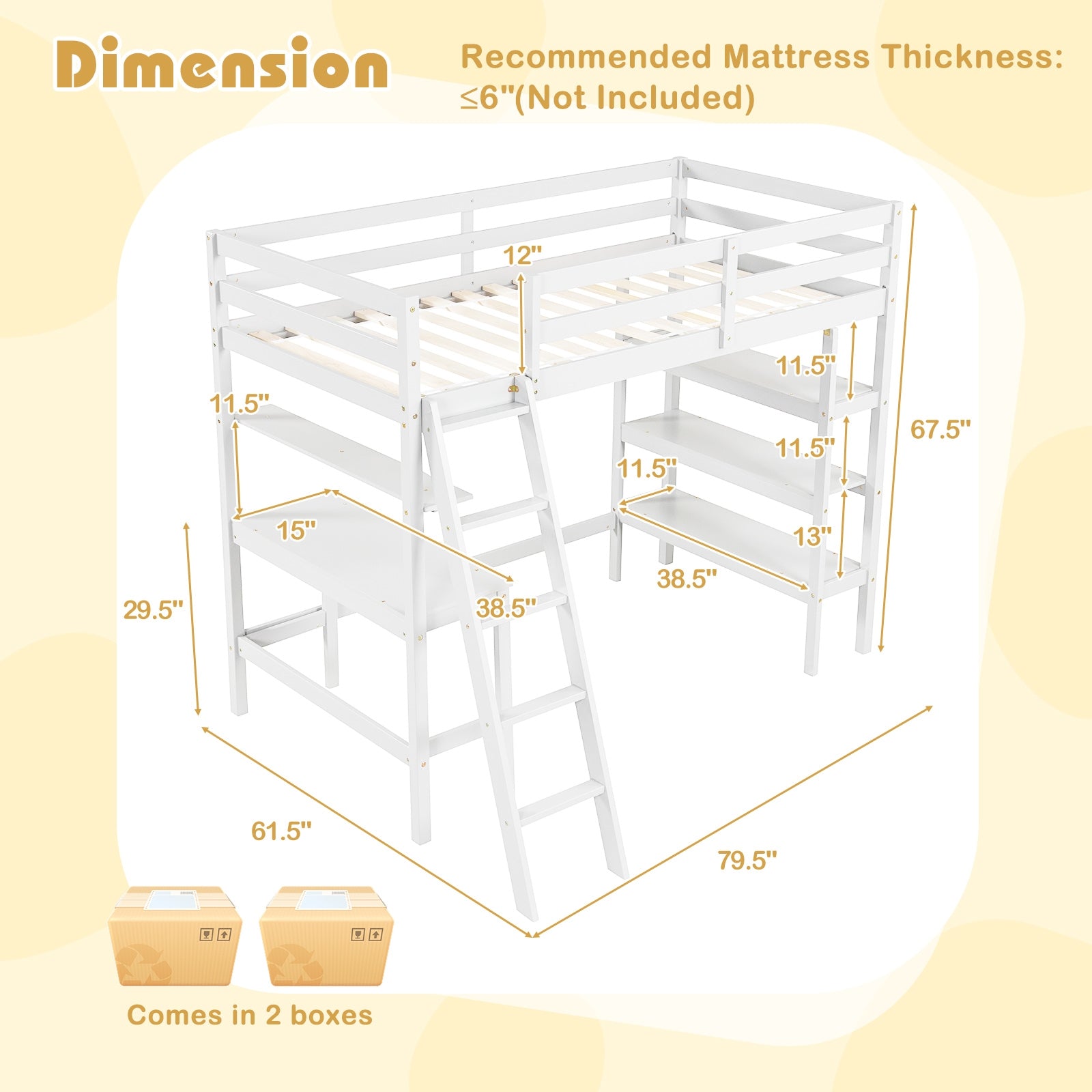 Twin Size Loft Bed With Desk, Bookshelves, White