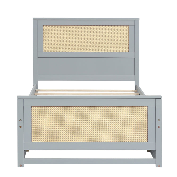 Twin Size Rattan Bed Frame with Storage Drawers, Gray