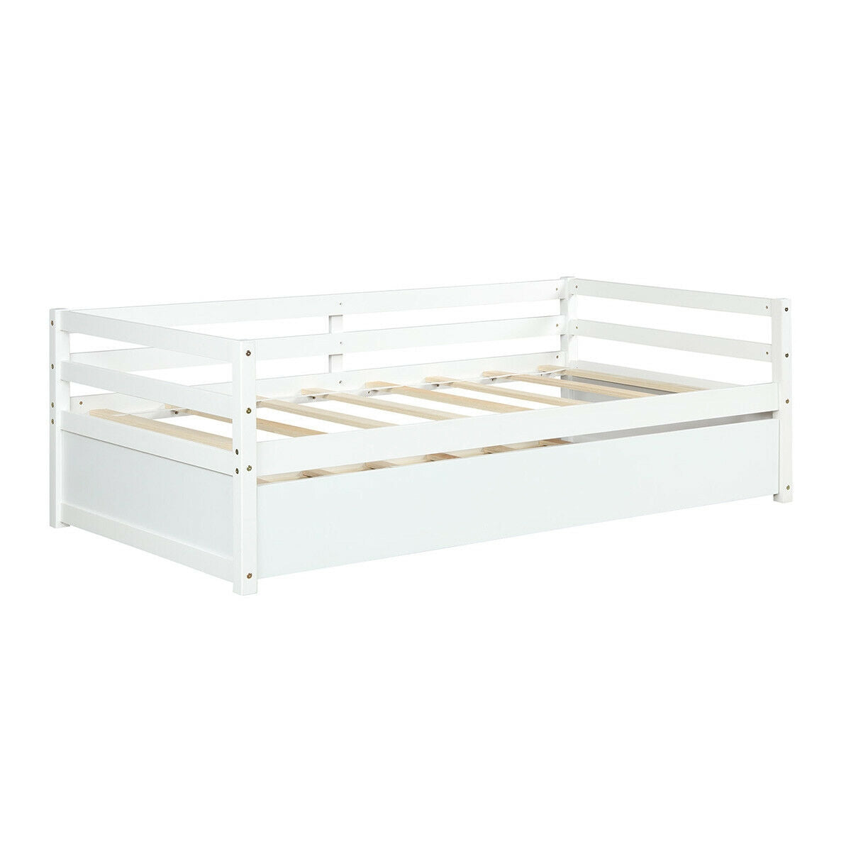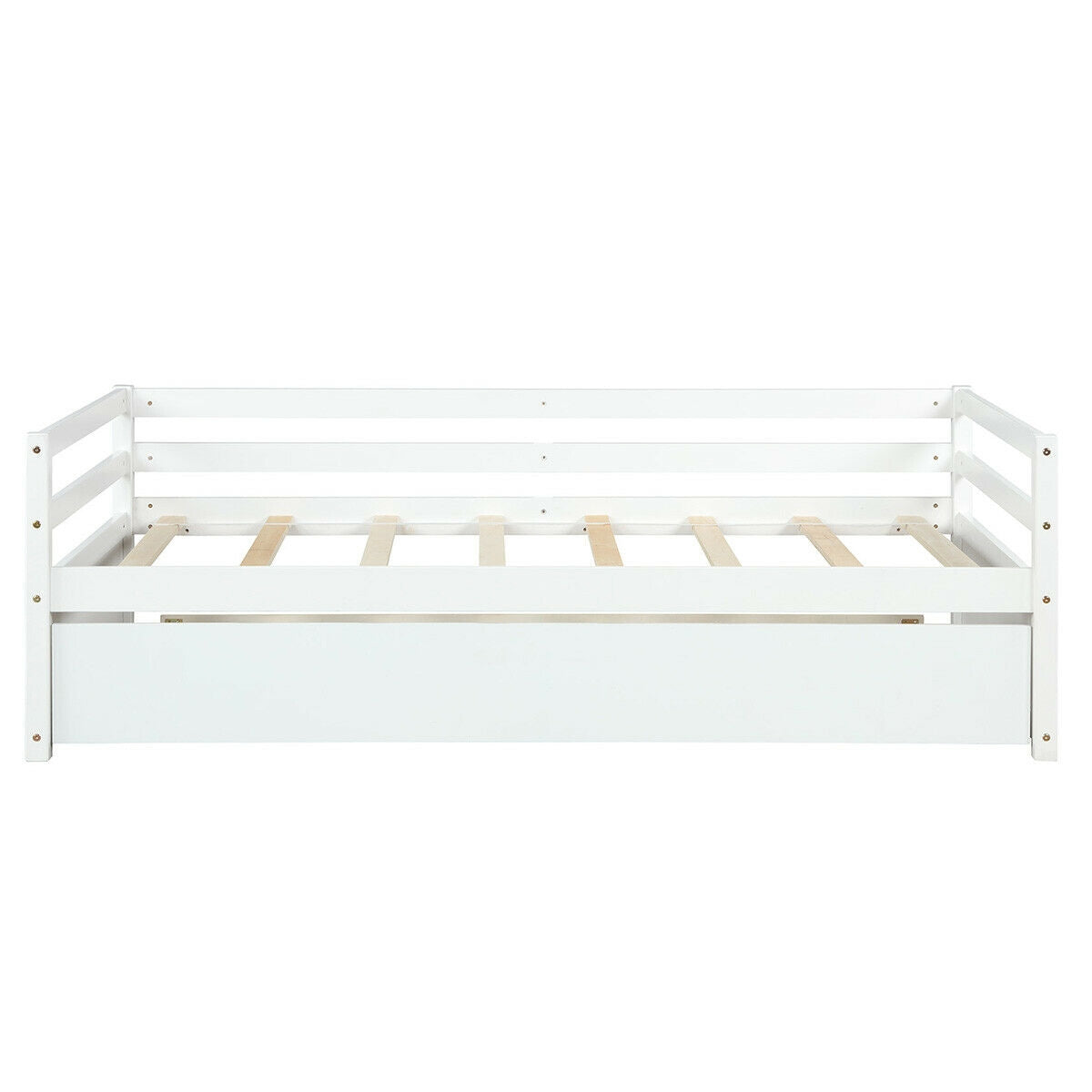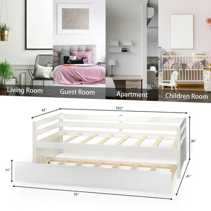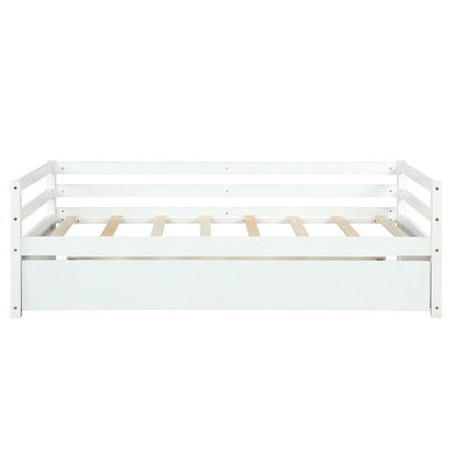Twin Size Wooden Slat Trundle Platform, White