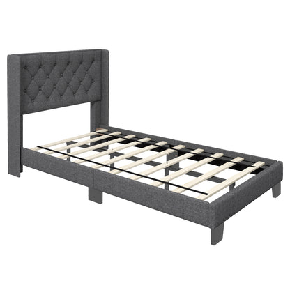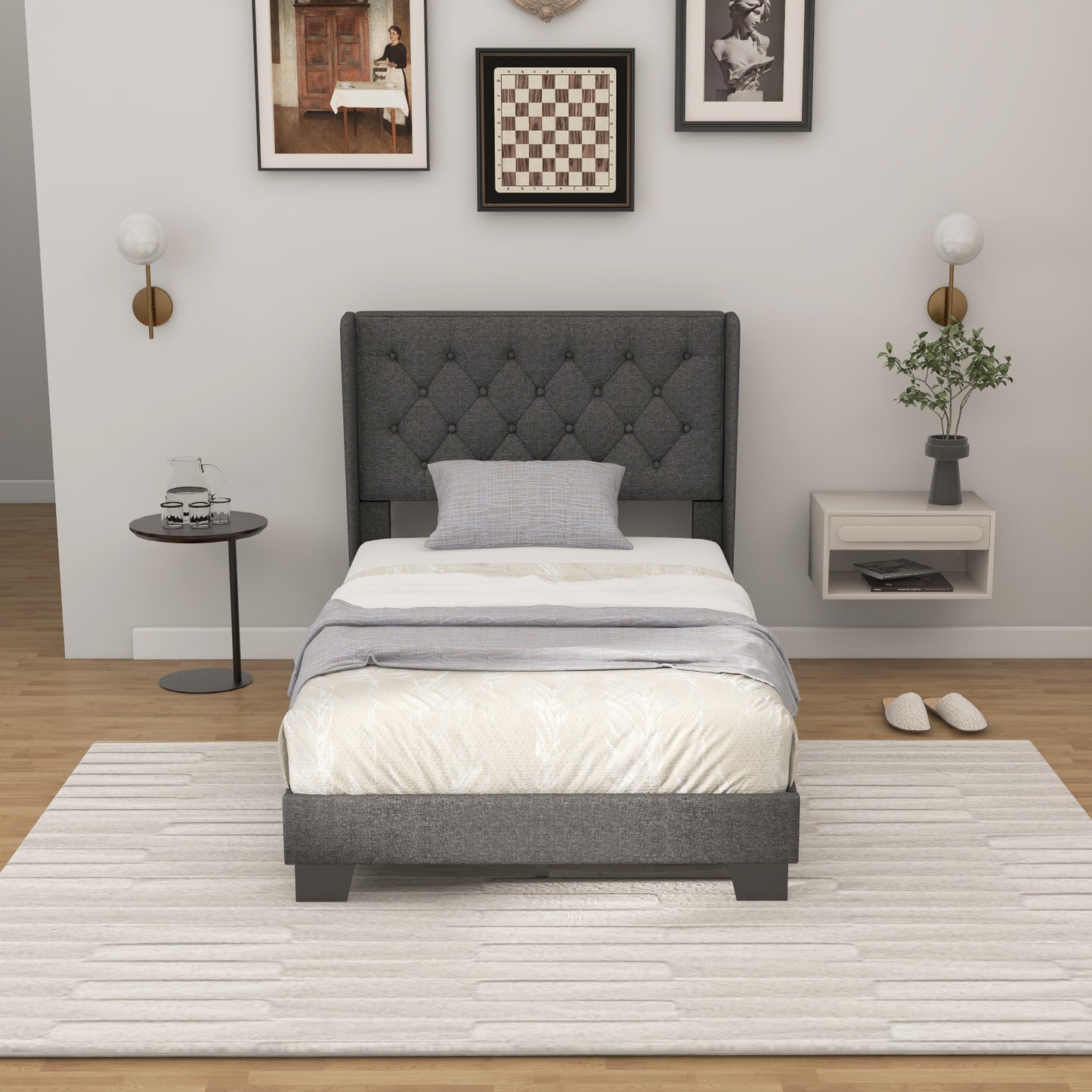 Twin/Full/Queen Size Upholstered Platform Bed with Button Tufted Headboard-Twin Size, Gray