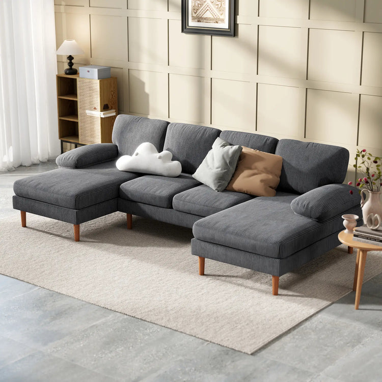 U Shape Couch with Double Chaise, Modern 4 Seater Sofa, Dark Grey