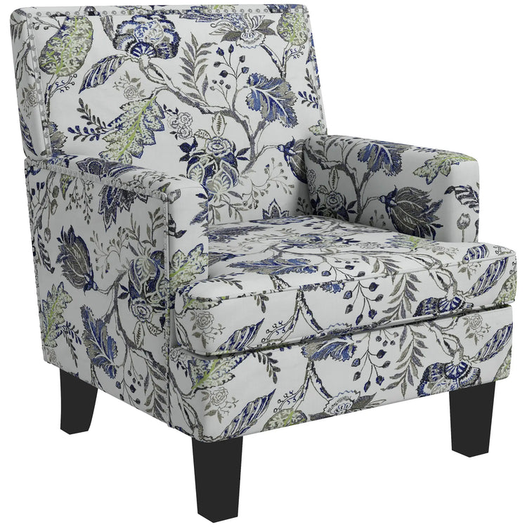 Upholstered Armchair, Mid-Century Accent Chair, Floral Pattern, Nailhead Trim, Multicolour
