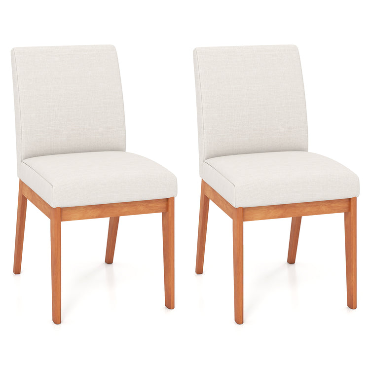 Upholstered Dining Chairs Set of 2 Kitchen Armless Side Chairs with Rubber Wood Legs, Beige