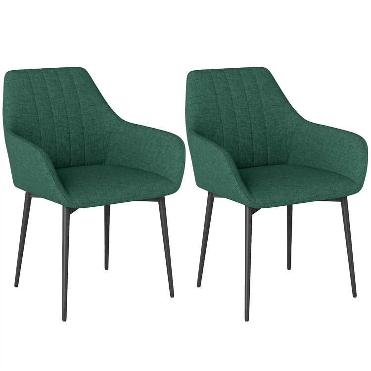Upholstered Dining Chairs Set of 2, Linen Fabric, Metal Legs, Dark Green