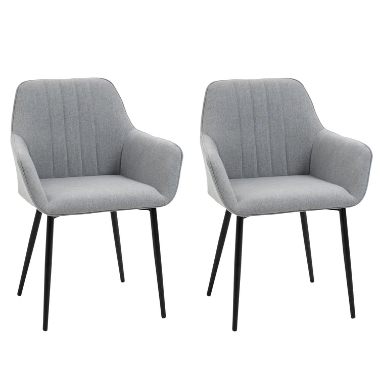 Upholstered Linen Dining Chairs, Set of 2, Metal Legs, Light Grey