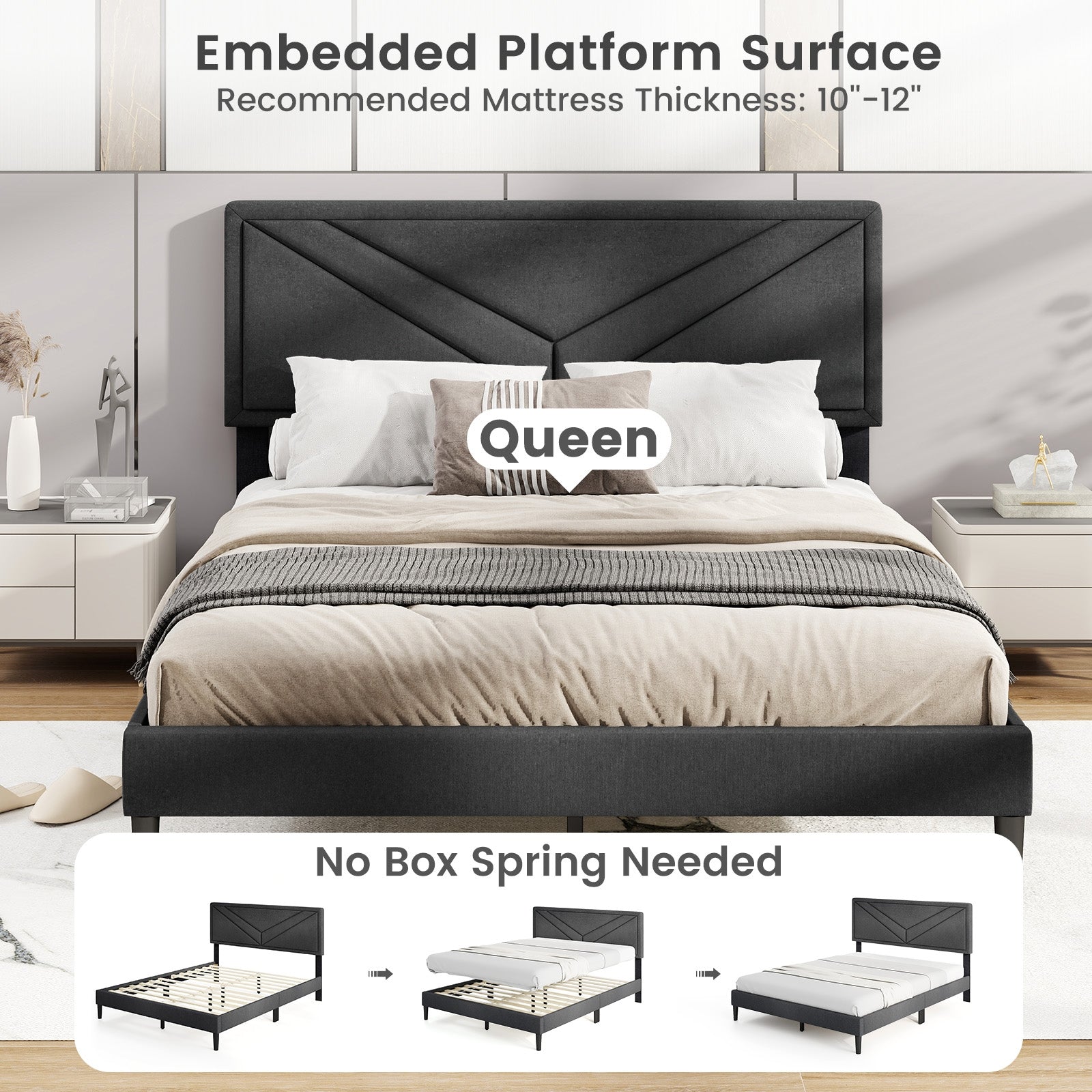 Embedded Platform Surface: Thanks to the embedded design, this bed ensures your mattress remains stable without any sliding. The platform bed eliminates the need for a box spring and is perfectly suited for a 10"-12" thick mattress.