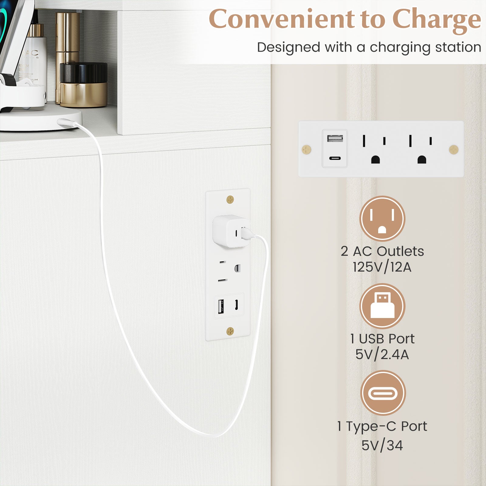 Vanity Desk with Mirror and Lights Makeup Table with Power Outlets, White