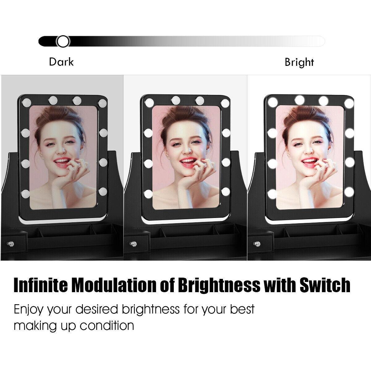 Vanity Dressing Table Set with 10 Dimmable Bulbs and Cushioned Stool, Black
