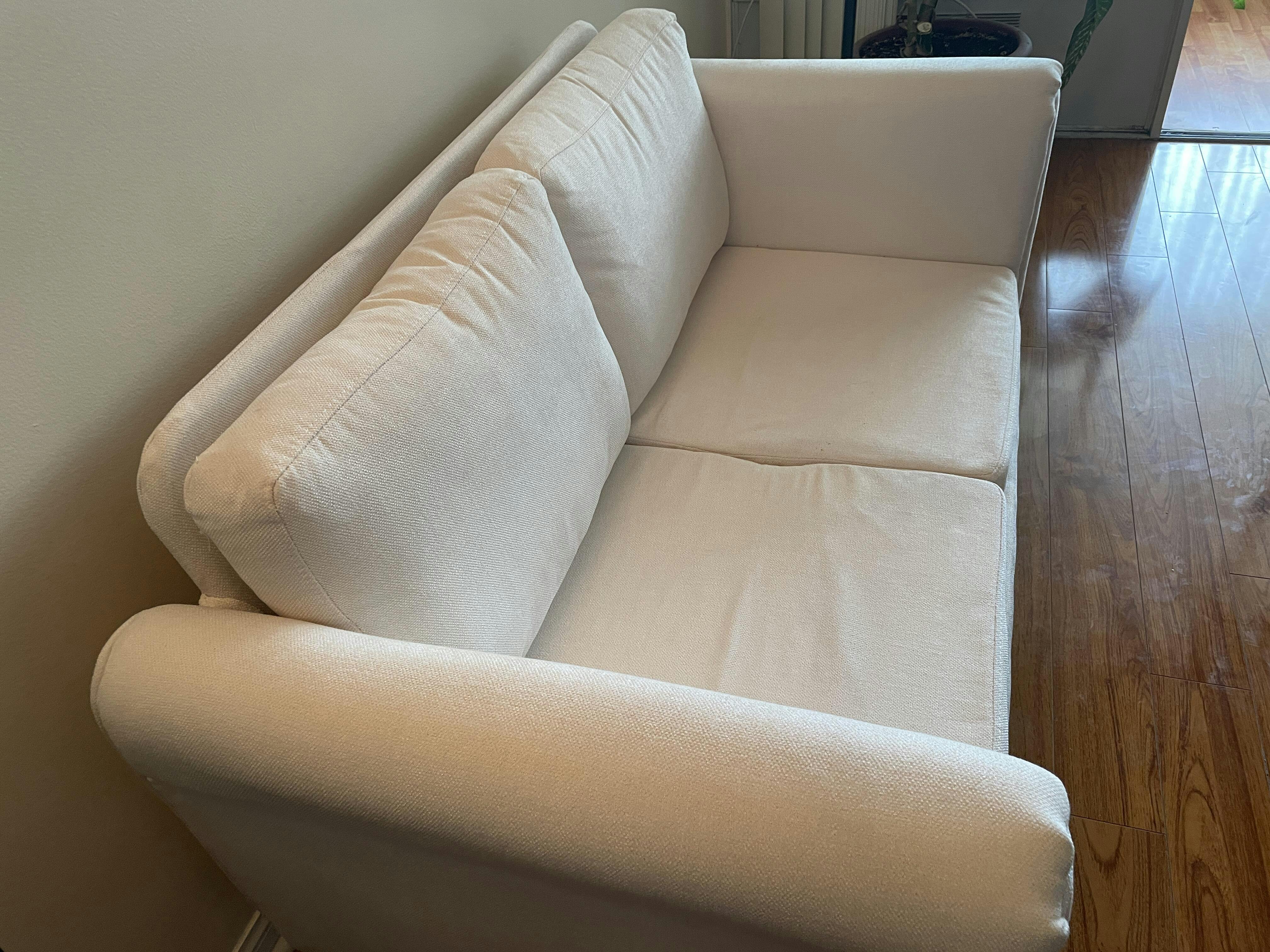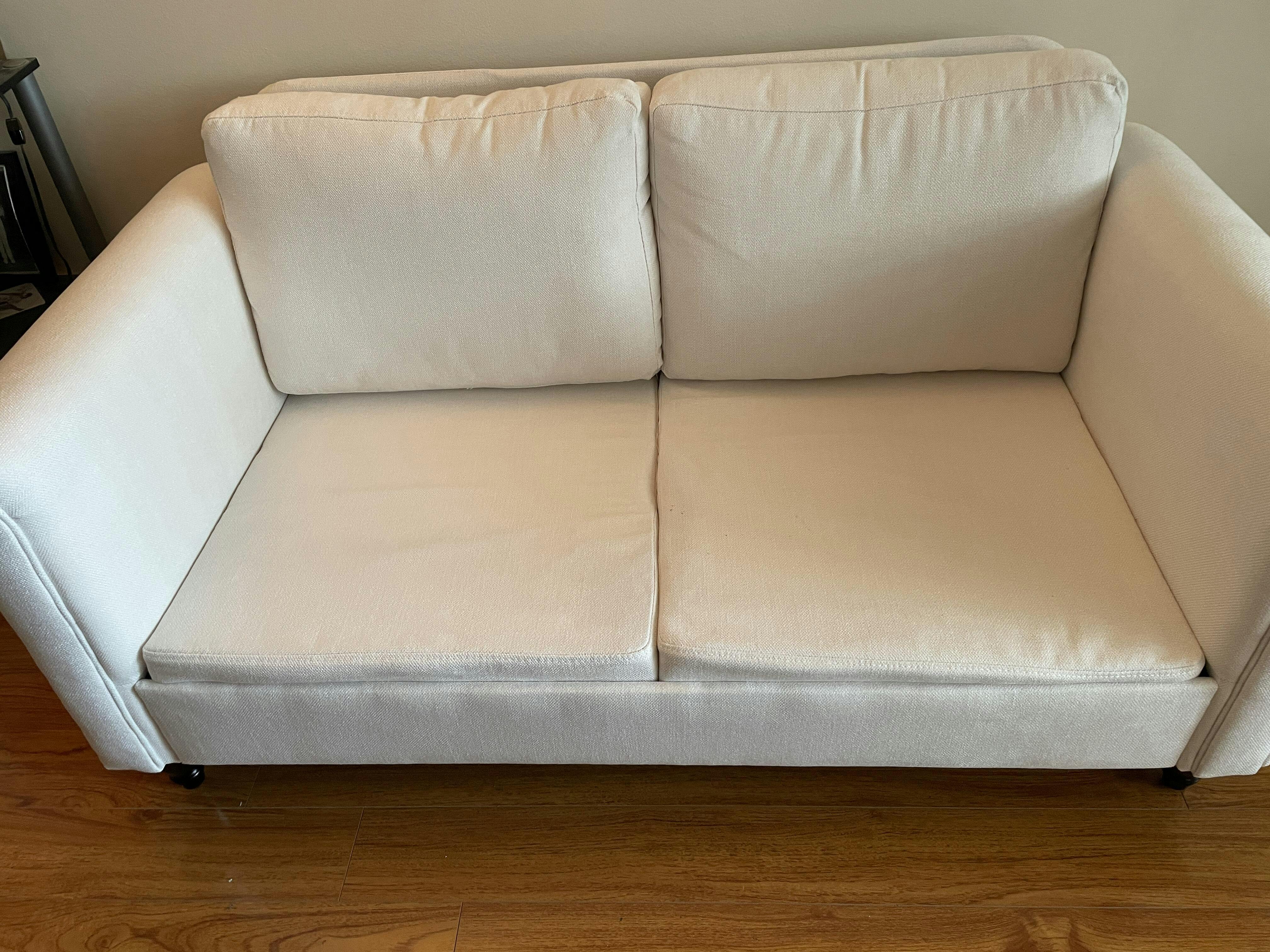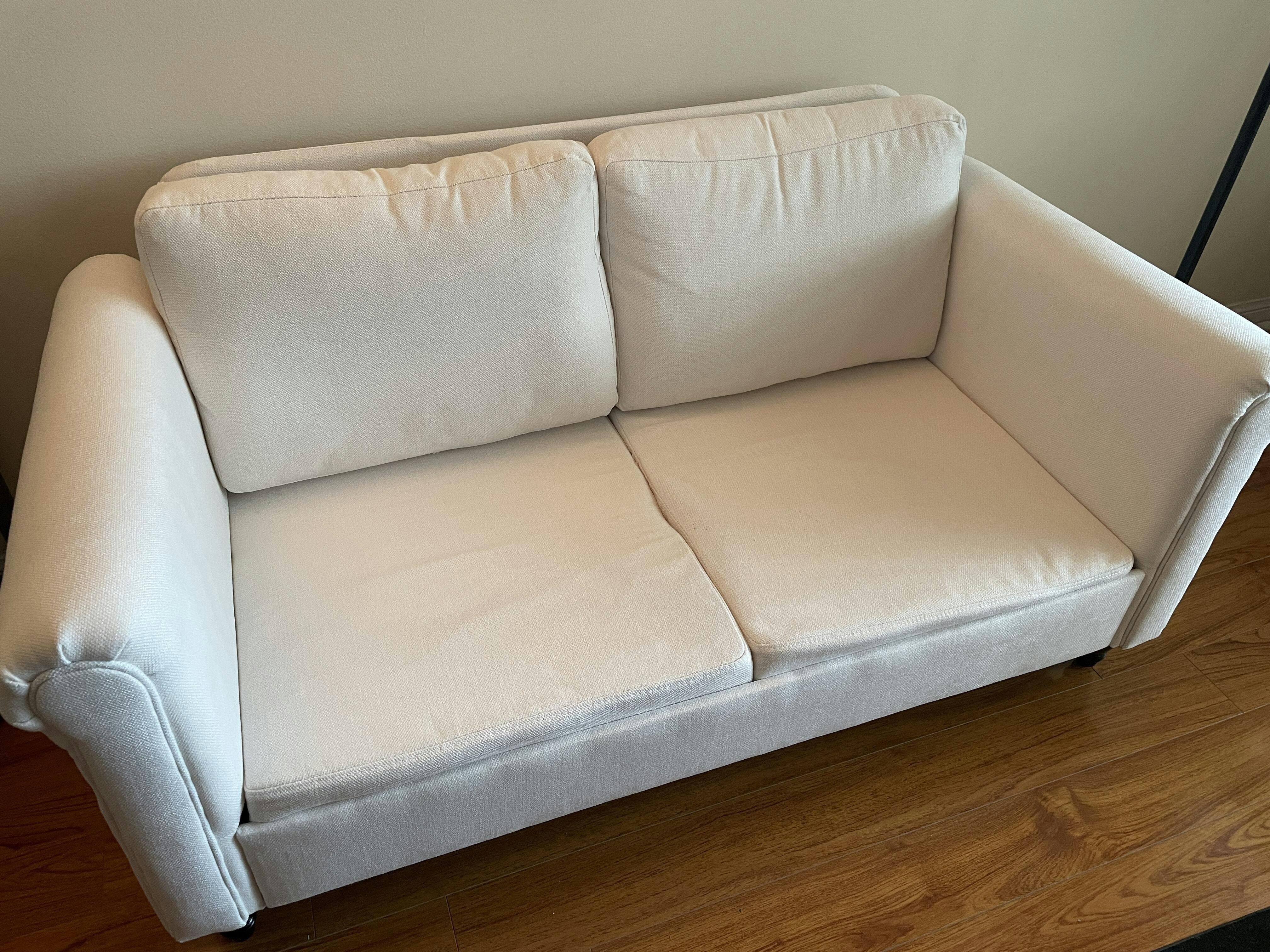 Vintage Loveseat, Chenille Fabric 2 Seater Sofa, Cream White
