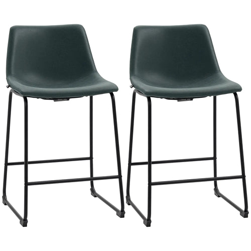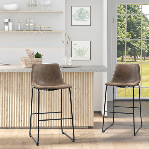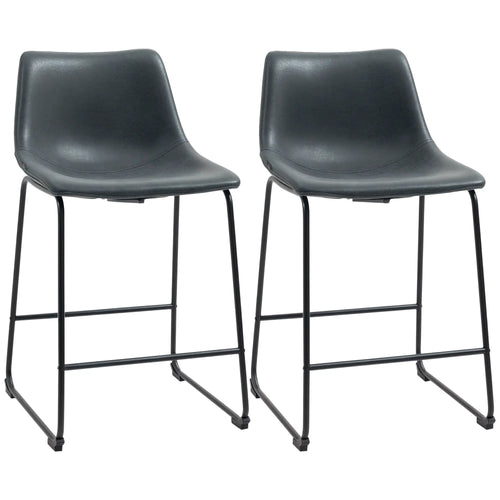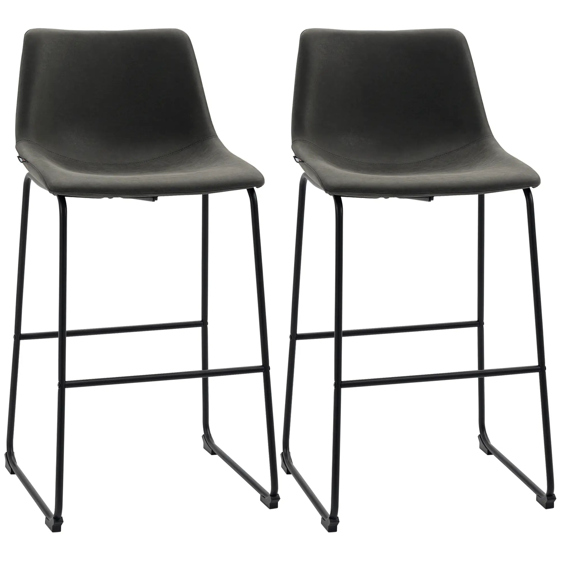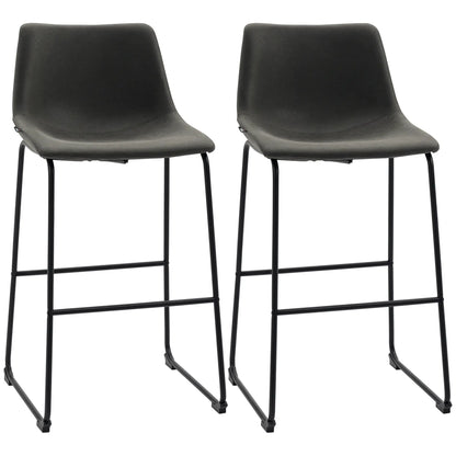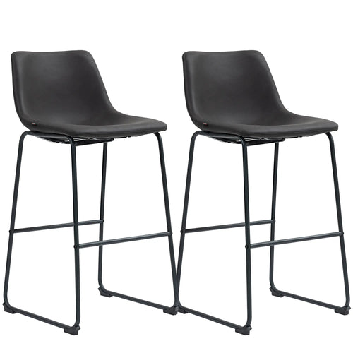 Vintage PU Leather Bar Stools, Set of 2, With Footrest, Dark Grey