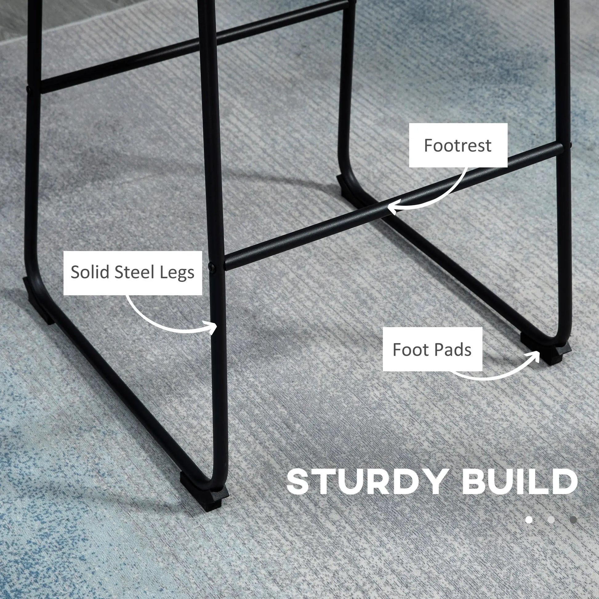 - Robust and stable with solid steel legs and plastic foot pads